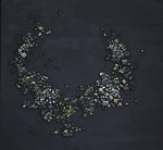 2010De inspiratie van dit doek lag in een stuk pyriet, ook wel fool's gold genoemd. Ik heb stukjes foamboard geknipt en met gelmedium aangebracht. Het doek is beschilderd met zwarte gesso. Vervolgens zijn spaarzaam accentkleuren aangebracht. Het fotograferen van dit doek bleek vrijwel onmogelijk. Deze afbeelding is het beste wat mijn camera er van maken kon.