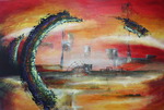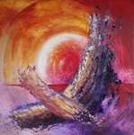 2011Acryl op doek. Een schilderij dat gewoon ontstond tijdens het werk. Ik heb mij laten inspireren door de kleuren. Ik heb voornamelijk kleuren van Golden gebruikt: Quinacridone Crimson; Yellow Ochre; Transparent Red Iron Oxide; Quinacridone / Nickel Azo Gold; Royal Talens Prussian Blue